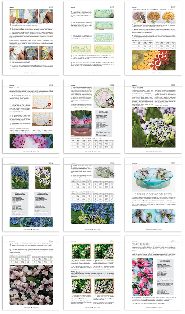 | Botanic Topics Book 2: Plant Portraits in Glass contains over 106 pages of clear and comprehensive step-by-step instructions, complete with materials lists, over 190 color photos and illustrations, all necessary firing schedules in Fahrenheit and Celsius, as well as a complete library of stencil patterns. | |||||||