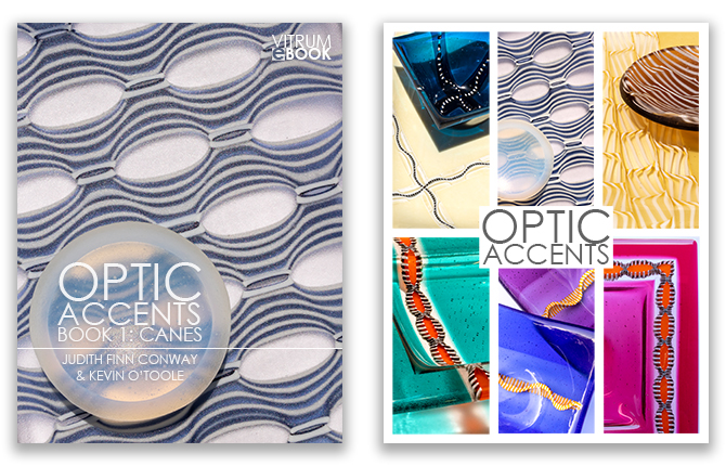 We proudly introduce Optic Accents, our new Vitrum Studio Book that explores original techniques for making pre-fired pattern canes. We’ll introduce you to the concepts, then take you step-by-step through the methods of making a variety of different Optic Canes that can be used to add a splash of complex design and color to your projects.