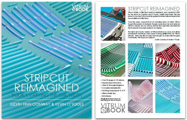 STRIPCUT REIMAGINED STRIPCUT REIMAGINED was one of the most requested classes taught at Vitrum Studio. This book teaches you the techniques and guides you through the steps of each project, in your own home at your own pace, and at a small fraction of the cost of a class. You might say it's a remarkable deal. We organized this book much like our classes - starting with a simple project focused on the fundamentals of the technique, then demonstrating 21 different project tiles that illustrate how this process is impacted by the special properties of glass -- flow, transparency and opacity -- culminating in 4 unique projects of increasing complexity that build on what you have learned. We take you step-by-step through each process, with clear directions and illustrations. With over 90 pages of clear instructions and over 170 photos and diagrams, we've tried hard to ensure that the book is suitable for all levels of experience. We think it will help the beginner to grow and will challenge the more experienced glass artist. We hope you'll enjoy it!