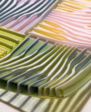 Sinuous stringers in kiln glass, seriously scrumptious patterns.